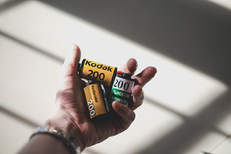 8 Oct 2018: kodak film roll and fuji film roll in hand after shot from old camera