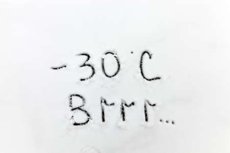 degrees -10 -20 -30 - 40 0 Celsius number lettering on icy glass covered with ice and frost. The concept of extreme cold weather