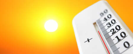 Mercury thermometer. Summer heat or global warming climate change concept.