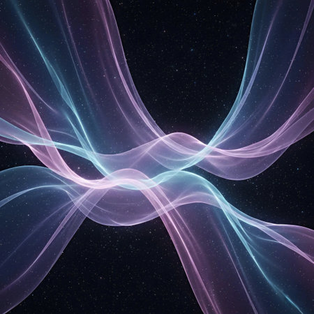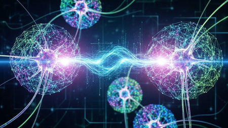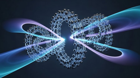 This artistic representation illustrates the concept of quantum entanglement, showing interconnected particles in space.
