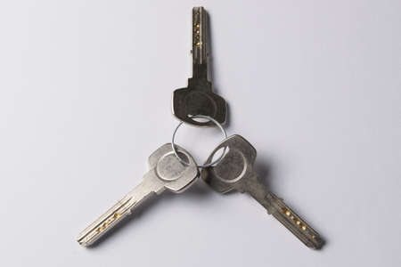 set of door keys on a white background. Safety concept,