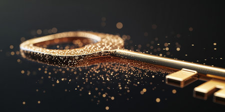 AI Generated. Abstract Golden Key Disintegrating into Pixels