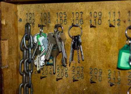 Closeup stand of locker key at reception