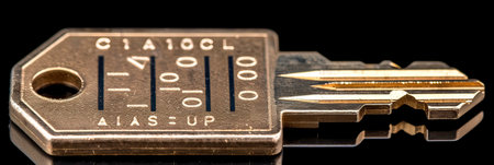 A close up image showing a key that has the inscription c1a10cl engraved on it, symbolizing a unique code or identification. The key is featured with intricate details