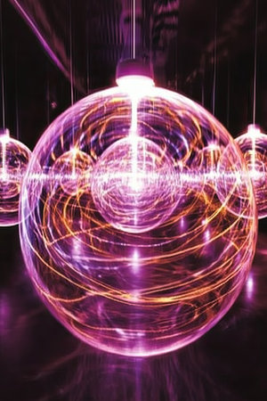 This image features several transparent spheres, each showcasing a complex, galaxy-like pattern within. The spheres appear to float against a dark background, with various light sources reflecting different colors. This abstract design could be used in science, technology or artistic projects and is suitable for a wide range of editorial or commercial purposes.