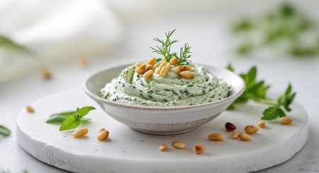 AI Generated. Delicious Green Herb Dip with Pine Nuts Recipe