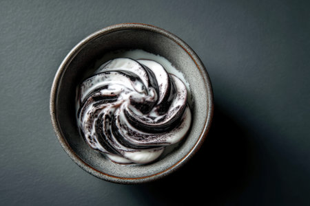thick cream swirls in a ceramic dish generative ai