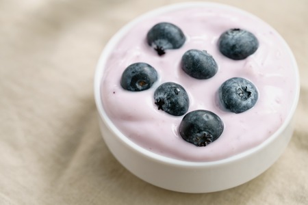 organic blueberry yogurt in bowl on table