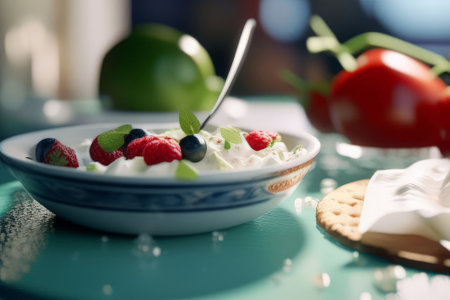 natural yogurt and red berries