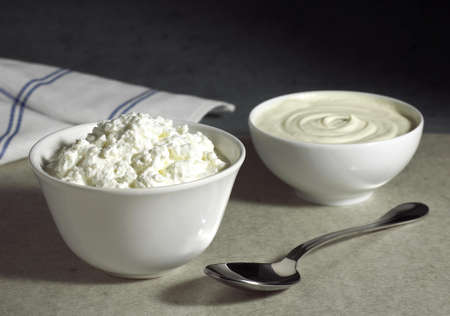 Dairy Produce, Bowls with Soft Cheese and Heavy Cream