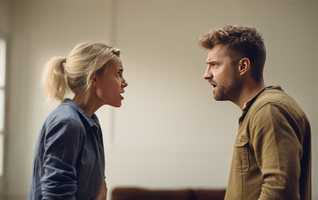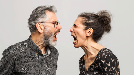 Mid aged couple yelling at each other. AI generated