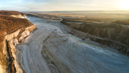Opencast mining quarry . Industrial Extraction of lime, chalk, sand, calx, caol. top Aerial view