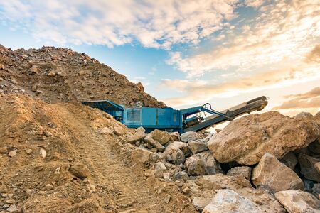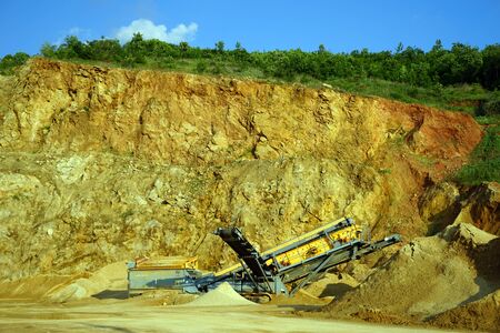 Stone crusher in a stone extraction mine. Heavy machinery to process stone