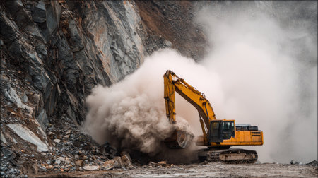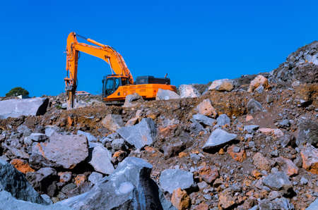Industrial rock and stone mining with heavy machinery