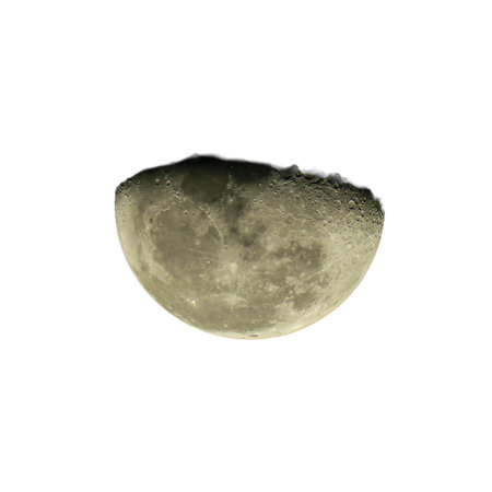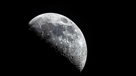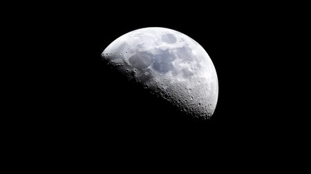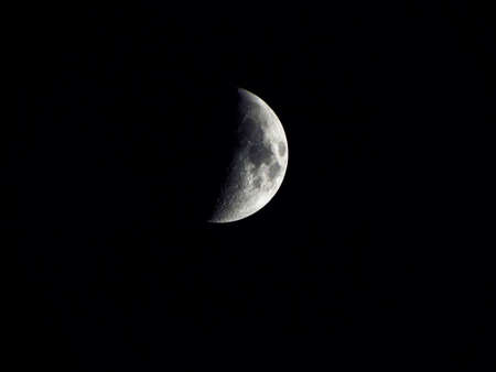 8th lunar day of the lunar calendar. Close-up of crescent moon over dark black sky at night. Silhouette of half moon isolated on a black background.