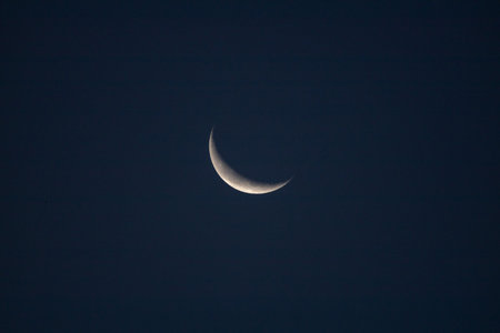 Capture the ethereal beauty of the crescent moon against a deep blue night sky for creative projects