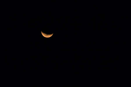 The orange moon is waxing crescent at night, a natural satellite against the starry sky.