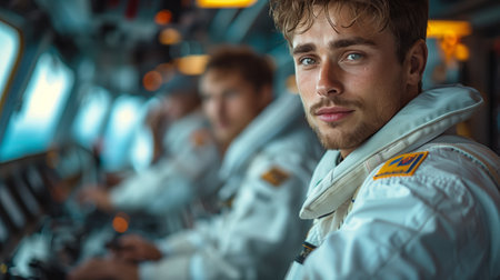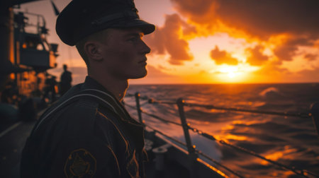 During a calm and serene moment at sea the deck cadet takes a moment to reflect on his journey from trainee to officerintraining feeling a sense of pride and accomplishment