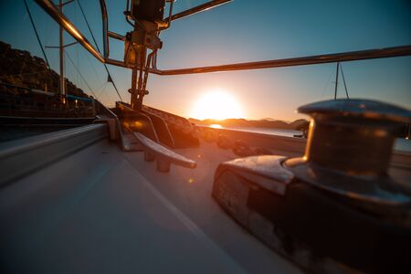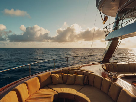 Beautiful view from the deck of a luxury yacht in the open sea.