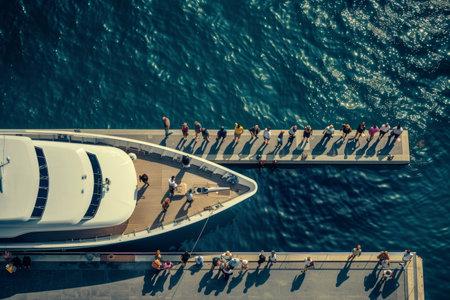 aerial view of a luxury yacht gracefully cruising the clear blue waters, offering an unparalleled experience of sea exploration.
