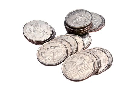 Stacks of US Quarters, isolated on a white background