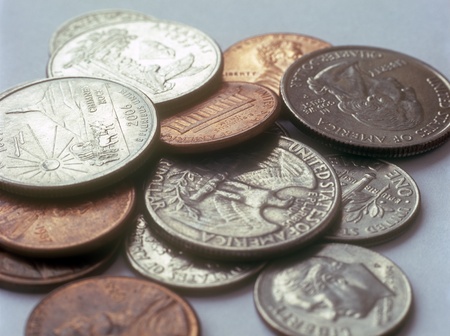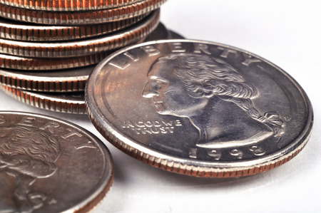American coins on a white backgreound.