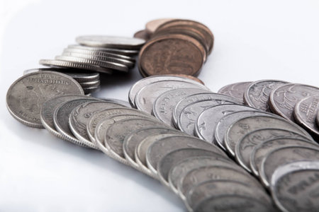 Russian coin stacks on a white background