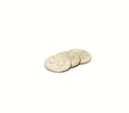 Arranged Quarter coins on white background