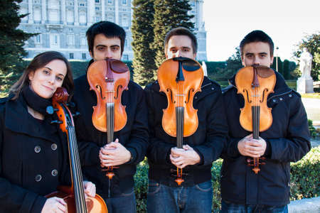 Young international musicians, a band performing. The concept of music, hobby, festival. Inspiration creativity.