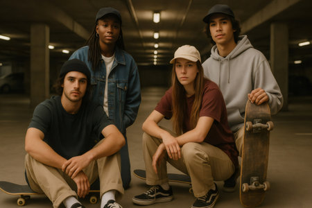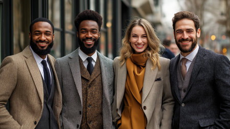 Young adults in urban setting displaying diversity and confidence for modern lifestyle concept