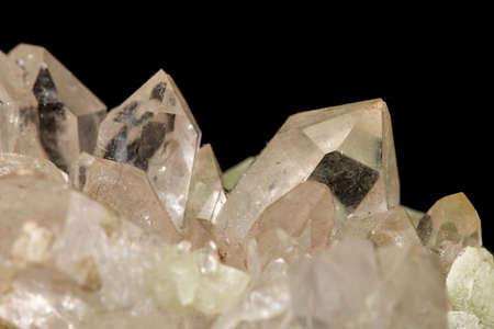 Quartz with mineral inclusions in the studio in front of black background photographed in marco mode
