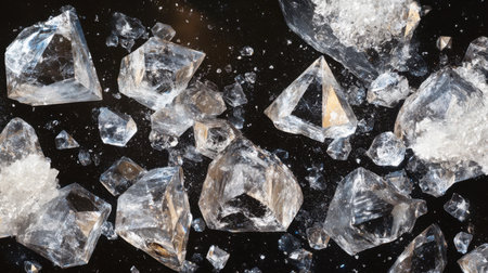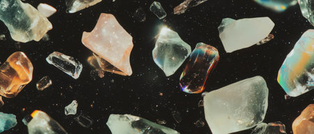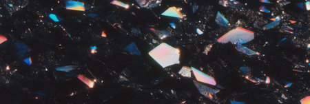 Textures of tiny glass fragments revealing intricate details against a dark backdrop