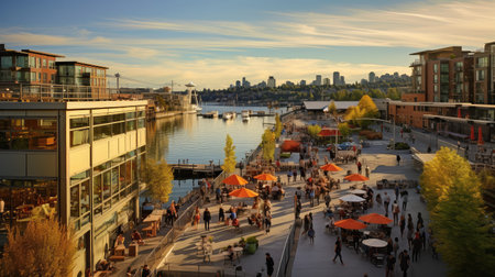 Panoramic view of the waterfront in Historic Town Annapolis, Maryland, Gift Shops and Marina.