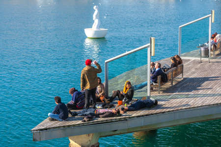 WELLINGTON, NEW ZEALAND, FEBRUARY 9, 2020: People are strolling on waterfront of Wellington, New Zealand