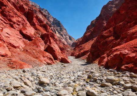 Majestic canyon with steep walls and vibrant rock formations under a clear blue sky