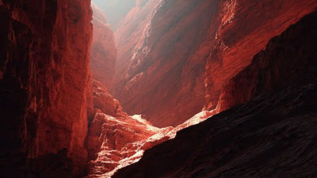 Vibrant sandstone canyon with sunlit patterns