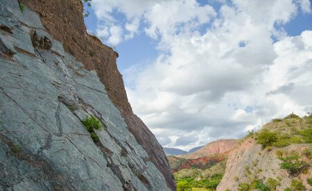 Quebrada de las conchas in Cafayate. 1700 meters, a beautiful landscape. Green mountain. Seven colors mountain in Argentina