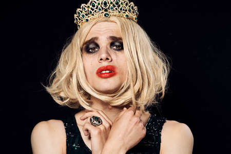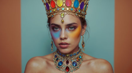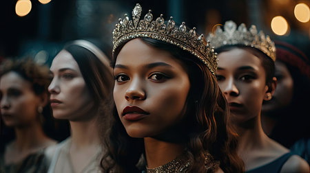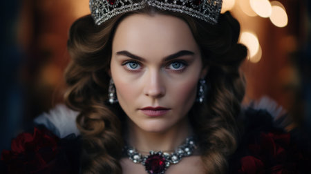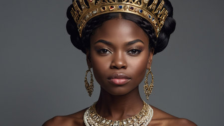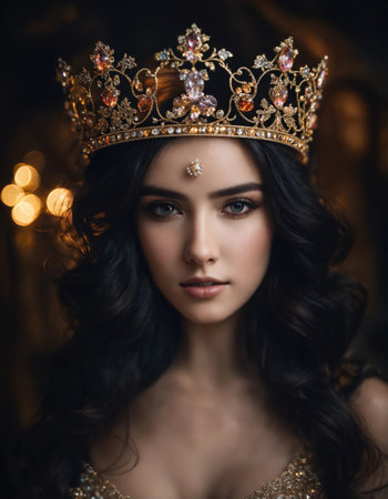 A woman wearing a crown on her head. This image can be used for various purposes.
