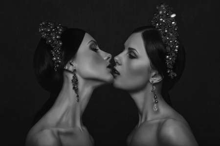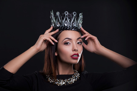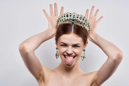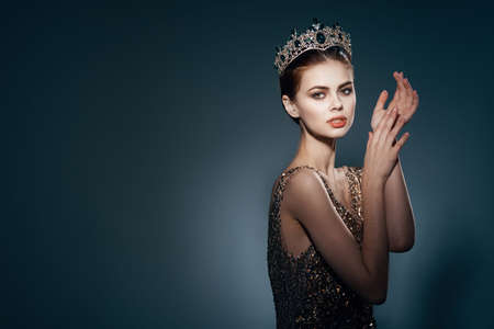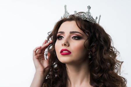 Fashion portrait of beautiful young woman with crown. Beauty, fashion.