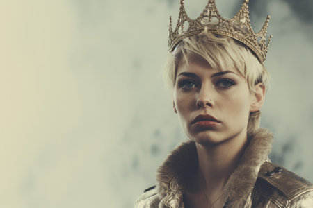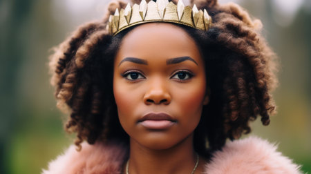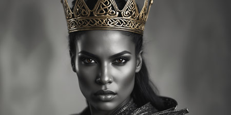 AI Generated. Fierce Warrior Queen with Crown and Intense Expression in Harmony