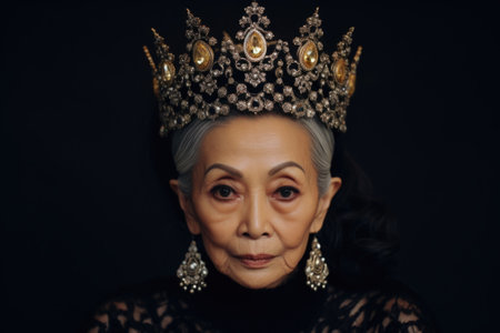 An elegant elderly woman wearing a tiara and earrings. This image can be used to portray grace, sophistication, and timeless beauty.