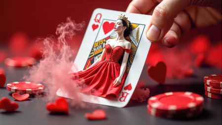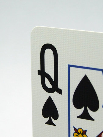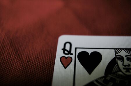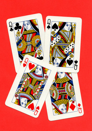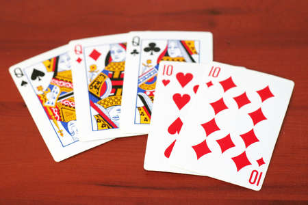 a hand of poker, playing cards opened on the table in a game, poker, four of a kind and queen