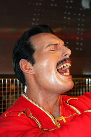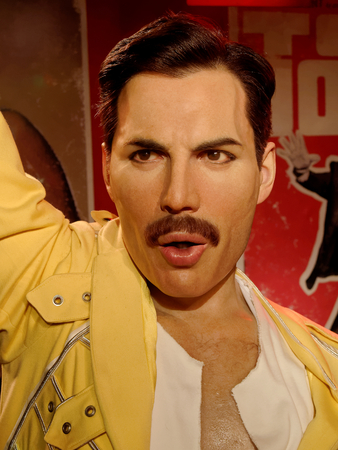 BLACKPOOL, JANUARY 14: Madame Tussauds, UK 2018. Wax statue of Freddie Mercury - British singer, songwriter and record producer, best known as the lead vocalist of the rock band Queen.