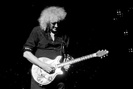 KYIV, UKRAINE - JUNE 30, 2012: Queen with Adam Lambert perform onstage during charity Anti-AIDS concert at the Independence Square on June 30, 2012 in Kyiv, Ukraine
