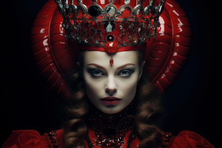 Captivating Red queen portrait. Royal female with bright red hair and fairy makeup. Generate ai