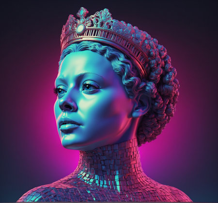 AI Generated. Colorful gradient lighting on a classic sculpture with a crown