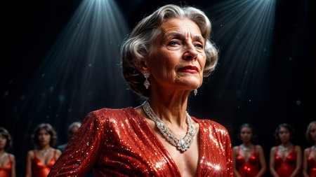 Portrait of an elderly woman with silver hair in a dark outfit expressing a thoughtful demeanor