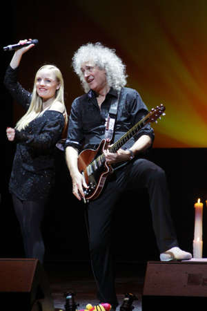 MINSK, BELARUS - MARCH 21, 2014 Brian May from Queen performs with Kerry Elils during Acoustic by Candlelight Tour