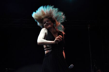 BONTIDA, ROMANIA - JULY 19, 2019: Singer of Florence and the Machine English indie rock band singing live on the stage during a concert at Electric Castle festival