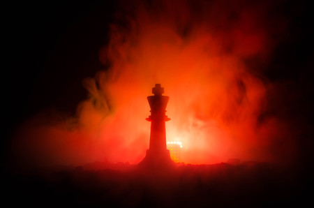 chess board game concept of business ideas and competition and strategy ideas concep. Chess figures on a dark background with smoke and fog. Selective focus